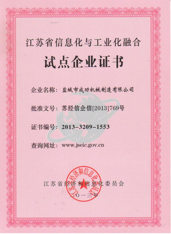 • 江蘇省信息化試點企業證書
